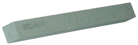 In carburo di silicio. Per affilare o rettificare acciai duri o temprati, Widia, ecc. Uso a secco, acqua o olio. Grane: M (180 Media) - F (220 Fine). Colore verde.