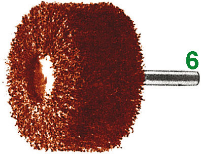 In corindone, per satinare leghe al Cr-Ni, leghe leggere, metalli dolci, alluminio e legno. Colore rosso.