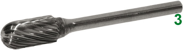 TIPO CILINDRICO-TESTA SFERICAIn metallo duro, taglienti rettificati.ATTACCO Ø mm 3.