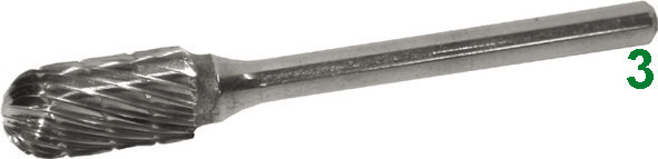 TIPO CILINDRICO-TESTA SFERICAIn metallo duro, taglienti rettificati.ATTACCO Ø mm 3.