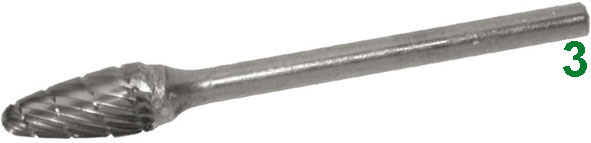 TIPO TONDO CONICOIn metallo duro, taglienti rettificati.ATTACCO Ø mm 3.