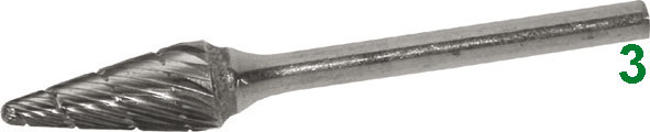 TIPO CONICO CON PUNTA SFERICAIn metallo duro, taglienti rettificati.ATTACCO Ø mm 3.