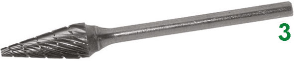 TIPO CONICOIn metallo duro, taglienti rettificati.ATTACCO Ø mm 3.