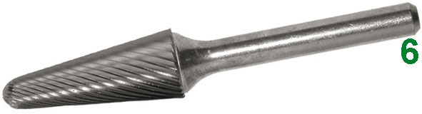 TIPO CONICO CON PUNTA SFERICA In metallo duro, taglienti rettificati. ATTACCO Ø mm 6.