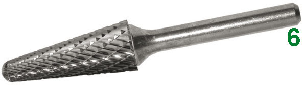 TIPO CONICO CON PUNTA SFERICA In metallo duro, taglienti rettificati. ATTACCO Ø mm 6.