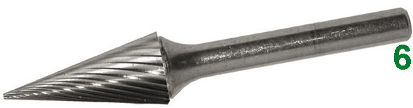 TIPO CONICOIn metallo duro, taglienti rettificati.ATTACCO Ø mm 6.