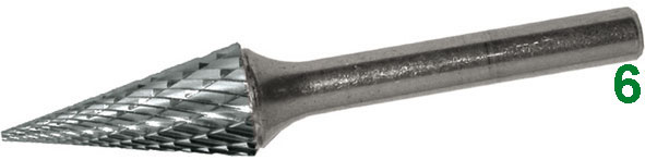 TIPO CONICOIn metallo duro, taglienti rettificati.ATTACCO Ø mm 6.