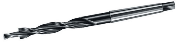 DIN 8377. Tipo N. In acciaio SUPER-RAPIDO HSS. Angolo di taglio 118°. Con eliche indipendenti. Elica minore per forare. Elica maggiore a gradino piano a 180°, per sede viti a testa piana incassata. Attacco Cono Morse.