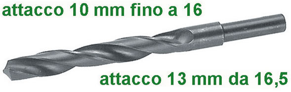 DIN 338. Tipo rullato in acciaio SUPER-RAPIDO HSS. Mod. CORTO. Da mm 10,5 a mm 16 attacco Ø mm 10 e lungh. mm 35. Da mm 16,5 a mm 20 attacco Ø mm 13 e lungh. mm 35.