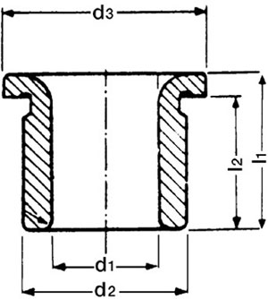 Note | Cod. Art. | Cad. | Cod. Prod. | d1 Ø int. mm | d2-d3 Ø est. mm | l1-l2 Altezza mm | Giacenza | Peso Art | QTAMIN |