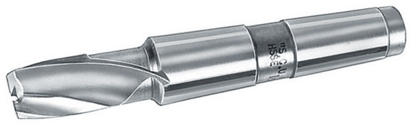 Tipo a 2 taglienti elicoidali. Serie corta. DIN 326 D - UNI 8260 A - ISO 1641/2. Dente frontale al centro. Attacco Cono Morse e foro filettato. Tolleranza tagl. e8.