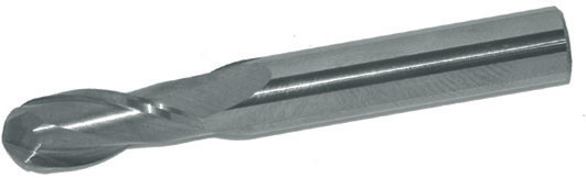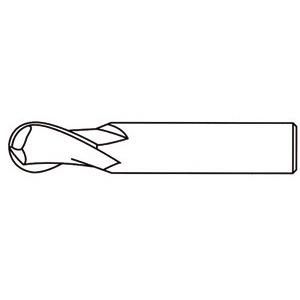 Serie corta. In metallo duro a micrograna. Tipo a 2 taglienti elicoidali a 30°. Taglio destro. Testa raggiata. Attacco cilindrico. Per cave, scanalature, asole ecc.