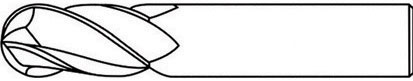 Serie corta. In metallo duro a micrograna. Tipo a 3 taglienti elicoidali a 30°. Taglio destro. Testa raggiata. Attacco cilindrico. Per cave, scanalature, asole e per contornare.