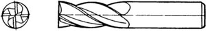Serie corta. In metallo duro a micrograna. Tipo a 4 taglienti elicoidali a 30°. Taglio destro. Due denti frontali al centro. Attacco cilindrico. Per contornare e per finire.