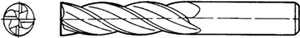 Tipo a 4 taglienti elicoidali a 30°. Taglio destro.