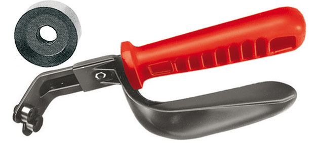 SBAVATORI PER LAMIERE Tipo con doppia lama tonda in acciaio SUPER-RAPIDO HSS, intercambiabile e utilizzabile da entrambi i lati taglienti. Impugnatura in materiale plastico e protezione salvamano in metallo. Per la sbavatura contemporanea dei bordi di lamiere in acciaio, alluminio, ottone, rame e plastiche fino a spessore mm 10.