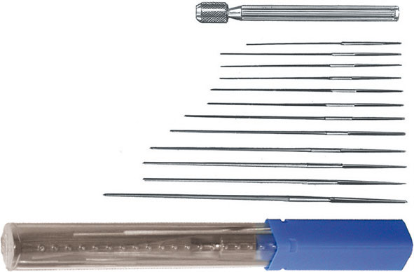 Per rettificare e ripassare fori di spruzzatori.Serie di 12 alesatori Art. 8940 G da Gr. 72 71 70 66 65 64 60 58 55 53 50 48 con portalesatore.In astuccio.