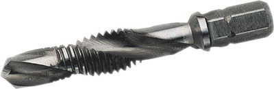 Combinazione di maschio, punta e svasatore (90°) per forare, maschiare e svasare velocemente in un'unica operazione. Attacco esagonale da 1/4 - C 6,3 per uso con avvitatori, trapani elettrici e a batteria. In acciaio SUPER-RAPIDO Classe HSSG per materiali con resistenza fino a 600 N/mm². Lo spessore del materiale non deve superare la misura del diametro (1xD). Per fori passanti. Uso destro. FILETTATURA METRICA ISO - Conforme DIN 13 (DIN 352).