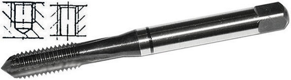 Gambo rinforzato, spirale diritta, imbocco corto per fori passanti e ciechi. Superficie nitrurata. Filettatura: Metrica - Passo grosso M - DIN 13 (DIN 371/376). Uso destro. Per tutti i tipi di ghisa, ottone, bronzo, materiali plastici e plexiglas (PMMA).