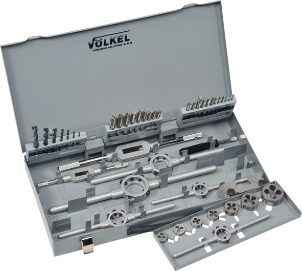 Contenuto: 1 serie per misura maschi a mano in HSS M 3-4-5-6-8-10-12 1 serie per misura filiere in HSS M 3-4-5-6-8-10-12 1 pz. per misura punte in HSS da mm 2,5-3,3-4,2-5-6,8-8,5-10,2 1 pz. per misura giramaschi regolabili Gr. 1 e 2 1 pz. per misura portafiliere Ø mm 20x5-20x7-25x9-30x11-38x14. In robusta cassetta con impugnatura di trasporto.