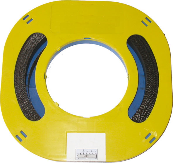 In acciaio bimetallico M42, con dentatura in acciaio HSS-Co8 ad alto tenore di Cobalto. Per tagliare acciai legati ad alta resistenza e acciai INOX. Indicate per tutte le segatrici a nastro. In rotoli indivisibili da m 30. Tipo con dentatura STANDARD.