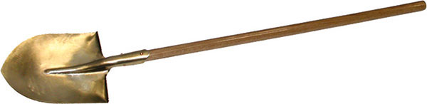 In lega bronzo-alluminio. Dimensioni badile mm 310x250, con manico in legno.