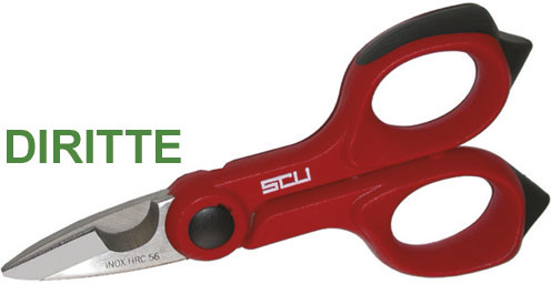 Tipo diritto professionale. Lame in acciaio INOX a forte durezza. Impugnature rivestite in materiale bicomponente con estremità aggiuntive sugli anelli per una presa più sicura. Perno a vite protetta. Robusta cerniera regolabile. Ampia gola troncafili/spelafili. Lama microdentata per una ottimale facilità di taglio.