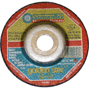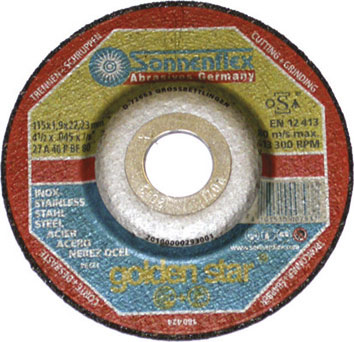 Per tagliare e sbavare metalli, acciai e acciaio INOX. Altissimo rendimento grazie alla combinazione ottimale di spessore e rinforzo. In elettrocorindone bonificato di tipo duro, legante in resina sintetica. Armatura in fibra di vetro senza tracce ferrose e solfuri. Foro Ø mm 22. Tipo a centro depresso.Grana 46.