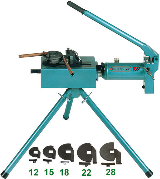 Curva a freddo i seguenti tubi senza riempimento fino a 180°: tubi di acciaio inossidabile fino a Ø mm 22 con spessore max. mm 1,5, tubi di rame crudo e ricotto DIN EN 1057 fino Ø mm 28, tubi idraulici e acciaio dolce fino a Ø mm 28 con spessore max. mm 2, tubi gas e acqua DIN 2440 da Ø 3/8-1/2-3/4.