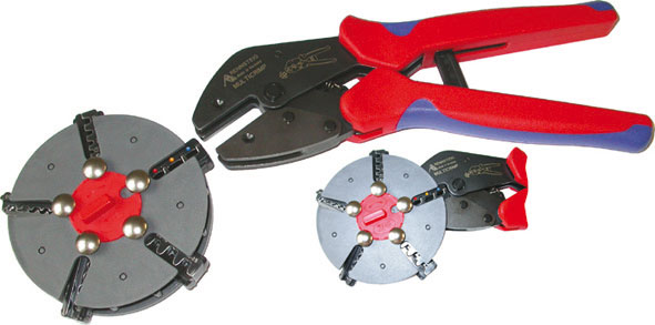 Per capicorda preisolati per cavi da mm² 0,5 a 6 Per capicorda non isolati per cavi da mm² 0,5 a 10 Per capicorda non isolati aperti per cavi da mm² 0,5 a 6 Per terminali a bussola per cavi da mm² 0,25 a 6 Per connettori a giunto non isolati per cavi da mm² 1,5 a 10.