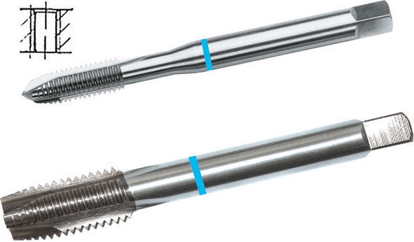 Gambo rinforzato (da mm 12, gambo passante), imbocco corretto per fori passanti. Filettatura: Metrica - Passo grosso M - DIN 13 (DIN 371/376). Uso destro. Per tutti i tipi di acciai INOX e acciai a truciolo corto con R fino a 1200 N/mm², titanio a truciolo corto.