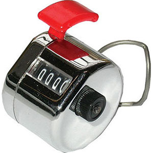 Per contare rapidamente oggetti in movimento. Si impugna infilando l’anello in un dito della mano. Gli impulsi vengono dati con un dito alla levetta superiore.Azzeramento istantaneo mediante bottone godronato. Altezza cifre mm 3,5.Numero cifre 4.