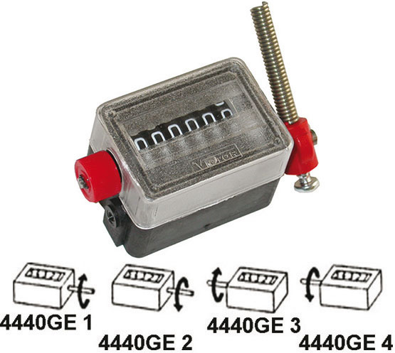 La levetta ritorna automaticamente al punto di partenza. Ogni colpo corrisponde ad un numero. Numero massimo colpi c.ca 1000 al min. La levetta è spostabile su qualunque posizione dell’albero. Azzeramento istantaneo a mezzo bottone zigrinato. Corpo e coperchio in materiale sintetico.