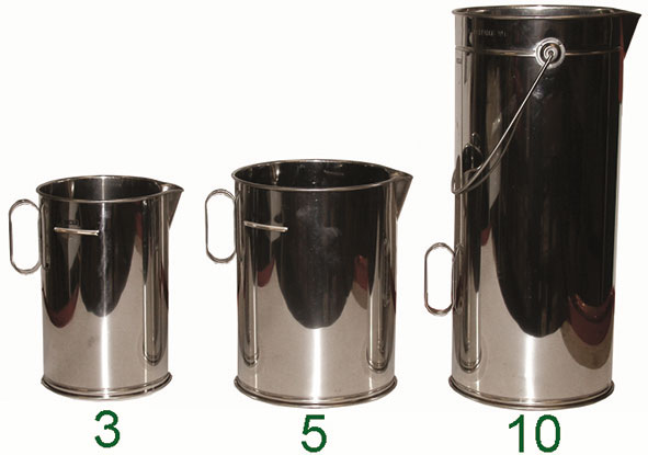 Tipo in lamiera pesante in acciaio inossidabile 18/10 AISI 304, con becco, impugnatura, bordi e fondo rinforzati.Non bollati, solo per uso proprio.