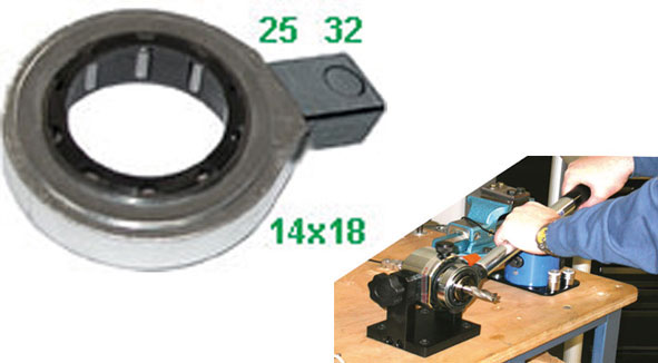 Indicato per uso con chiavi dinamometriche ad innesto femmina mm 14x18 (Art. 803 G 200 - 805 GH 200/300/400 - 805 GR) per un serraggio controllato.