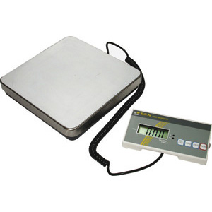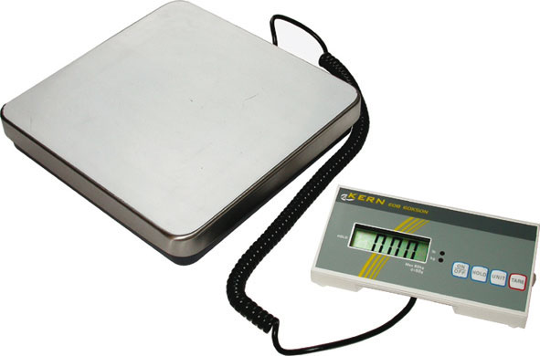Tipo a piattaforma, con piatto squadrato in acciaio inossidabile, dimensioni mm 300x300. Ideale per pesare pacchi in spedizione. Display LCD a 4 digit (alt. cifre mm 25), con tasto ON/OFF per accensione e spegnimento, tasto HOLD per visualizzare la pesata per 5 secondi (anche dinamica, ideale per pesare per es. animali), tasto UNIT per selezionare l'unta' di peso tra Kg e lbs, tasto TARE per inserimento tara, Apparecchio indicatore, dimensioni mm 235x114x51, con cavo lunghezza m 1,5, supporto murale in dotazione. Funzionamento con alimentatore di corrente V 230-50 HZ (incluso) o con 4 batterie alcaline 1,5 V (tipo AA - Art. 3600 E), non incluse. Dispositivo di autospegnimento dopo 3 minuti. Peso kg 4,2. Temperatura ambiente ammessa da +10° C a + 35° C.