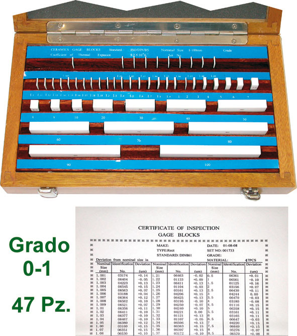 In ceramica ad alta resistenza con precisione secondo DIN EN ISO 3650, adatti per uso in sala metrologica e per il controllo di strumenti di misura, ecc. Finitura lappata. Con numero di identificazione individuale e certificato di ispezione. Certificazione ACCREDIA fornibile a richiesta. In cassetta legno.