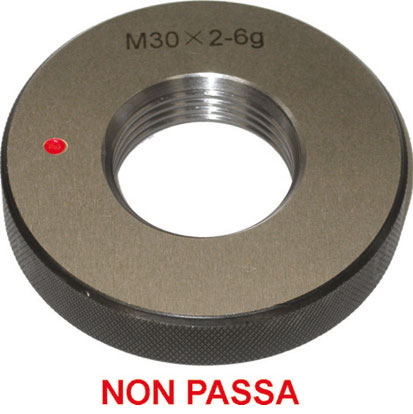 Calibro ad anello DIN 13, NON PASSA per filettatura metrica fine destra, in acciaio speciale, temprato, tolleranza 6g.