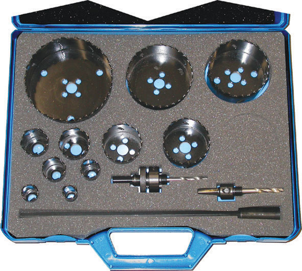 Tipo con denti riportati in metallo duro, professionale. Denti stradati a dentatura fissa, 3 denti per pollice. Da usare su trapani portatili o a colonna. Grande resistenza all'abrasione e lunga durata del dente e della affilatura. Per forare fibre di vetro al carbonio, grafite, acciai duri, leghe al Titanio, ghise ecc. Profondità della sega a tazza mm 40.