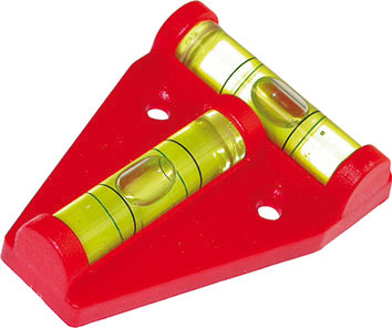 In ABS infrangibile a T per piani. Con 2 bolle, orizzontale e verticale. Sensibilita' mm 1,8/m.Con fori per viti di montaggio. Dimensioni mm 60x45.