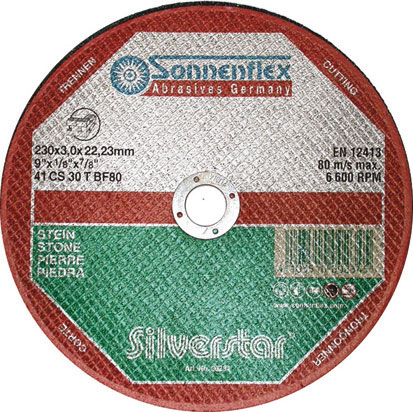 Indicate per taglio di pietre naturali, marmi e pietre artificiali. Tipo a centro piano. Grana 30.
