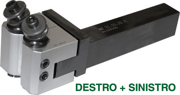 A 2 godroni, per uso assiale. Per ottenere godronature RGE 30°, RGE 45° e RGE 60°.Per corpi con Ø da mm 5 a 250. Lunghezza mm 165. Sezione mm 20x25.Per uso destro e sinistro.
