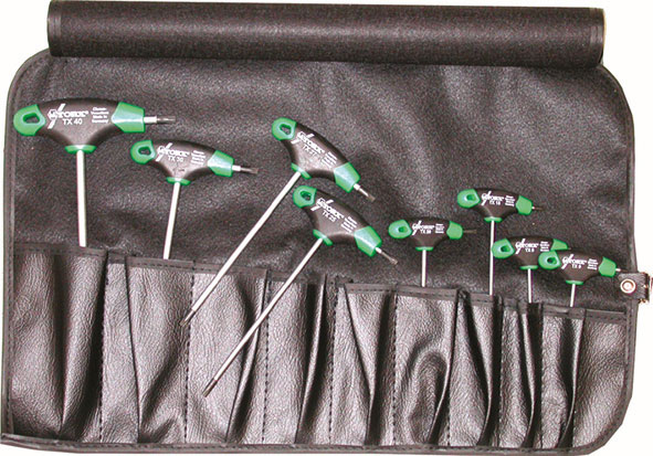 Serie di 8 chiavi Art. 913 GD da T9 - T10 - T15 - T20 - T25 - T27 - T30 - T40.Confezione in borsa arrotolabile Art. 2076 GBB.