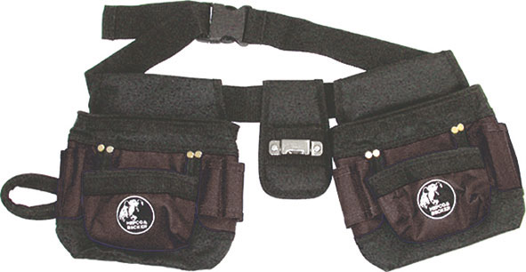 Tipo professionale in robusto poliestere rinforzato, antitaglio e antiabrasione. A tasche multiple per chiodi, minuteria, martello, pinza, tenaglia, agganci laterali e supporto centrale in metallo per utensili con clips. Cintura regolabile. Con chiusura a scatto. Ideale per carpentieri, manutentori, edili, falegnami, ecc.