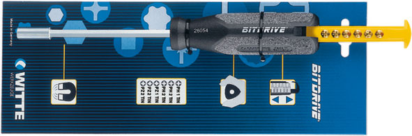 Tipo fisso con 6 inserti assortiti nell’impugnatura.In acciaio al CROMO-VANADIO. Con attacco esagonale per inserti da 1/4". Impugnatura anatomica triangolare, in plastica nera con struttura superficiale antiscivolo.Lunghezza totale mm 265.