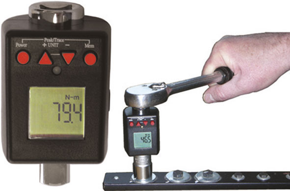 Tipo pratico e leggero che inserito tra la leva a cricco e la relativa bussola permette di rilevare il valore di serraggio effettuato. Corpo in materiale sintetico rinforzato, parti operanti in acciaio. Precisione ± 2%. Memoria fino a 50 dati rilevati, risoluzione display 0,1, unità di misura selezionabili kg/cm - kg/m - lb/in - lb/ft - N/m. Alimentazione a batteria mod. CR 2032 (Art. SCU 3600 T) per Art. 794 A 1/4 e 2 batterie alcaline a 1,5 V tipo AAA (Art. SCU 3600 C) per Art. 794A 1/2, non in dotazione. Autospegnimento. Modalità di funzionamento Picco/Traccia.