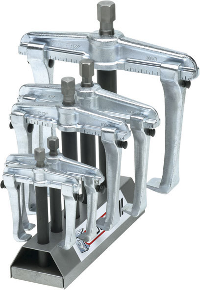 Composto di cinque estrattori Art. 1425 GT su robusto supporto in lamiera, da esposizione e da officina.Apertura estrattori: mm 100 - 140 - 170 - 210 - 250.
