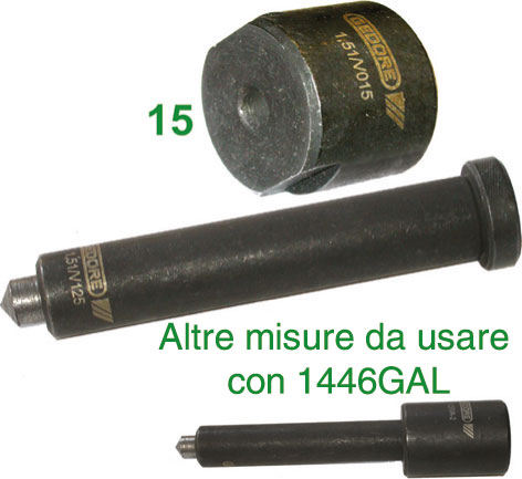 Prolunghe per pistone idraulico degli estrattori Art. 1446 GA 140-200. La lunghezza mm 15 serve anche come protezione del pistone. Per le lunghezze mm 45 a 205 occorre anche l'adattatore Art. 1446 GAL.