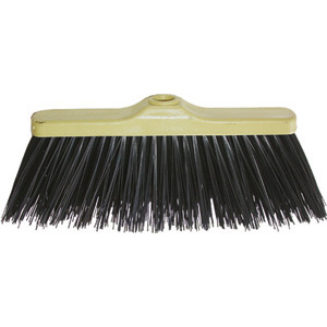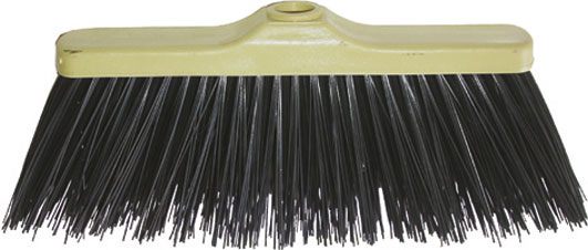 Tipo a scopa con corpo in plastica mm 270x45 e foro per l'inserimento del manico. Setole nere in materiale sintetico. Adatto per grandi superfici sia in esterni che interni. Senza manico.