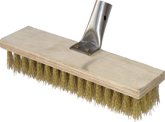 Tipo a frattazzo rettangolare, con attacco per manico, mm 270x70. Corpo in legno. Filo in acciaio ondulato, ottonato, Ø mm 0,40.